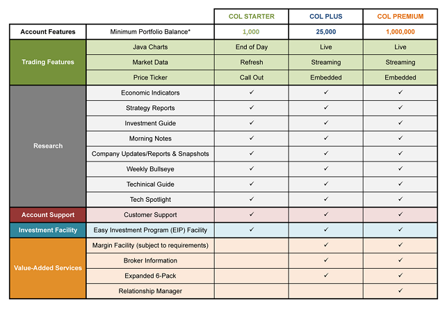 COL Financial offers a host of online trading and information services, among which are: