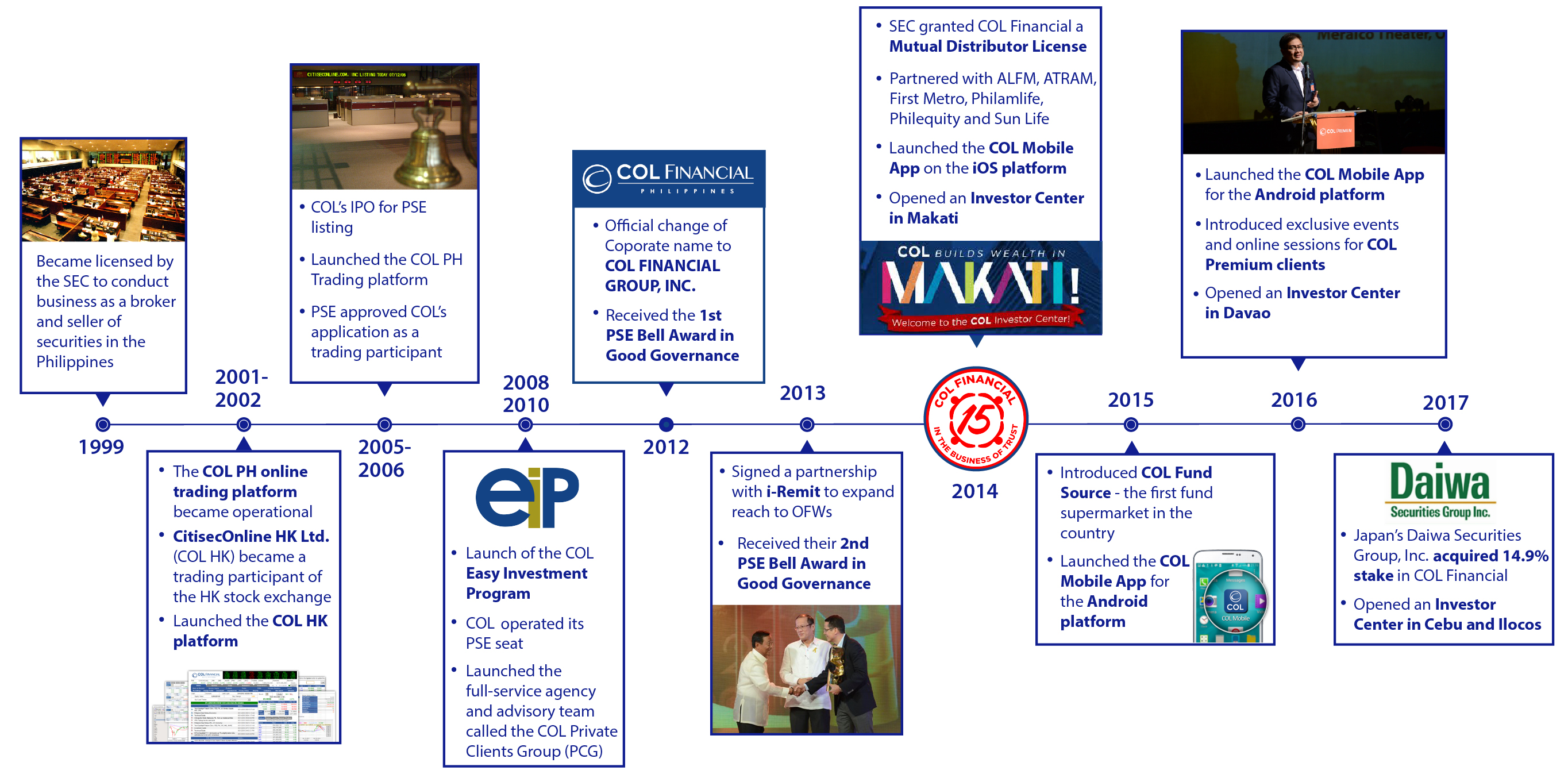 Conrado F. Bate, Filipino, is a Bachelor of Arts in Economics and Bachelor of Science in Marketing Management graduate of De La Salle University. He is currently the President and Chief Executive Officer of COL and serves as a director for COL Investment Management, Inc. He has extensive experience in the Philippine stock brokerage and fund management industry. Prior positions that he held include: Vice President of JP Morgan Philippines in 2002, President and CEO of Abacus Securities Corporation from 1995 to 1997, and Vice President of Fund Management Division of Philamlife Insurance Company from 1990 to 1995. Mr. Bate was a member of the Board of Directors of the Philippine Stock Exchange (2005 to 2006) and served as its Chairman of the Investor Education Committee and Member of the Legislative Committee. He was an independent director of the ATR Kim Eng Asset Management from 2005 to 2010 and serves in the same capacity for Corston-Smith Asset Management Sdn. Bhd. from February 2009 to present. He is also a member of the Board of Trustees of the Shareholder’s Association of the Philippines from January 2017 up to the present.
